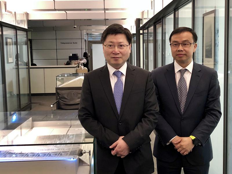 圖:滙豐銀行資本市場亞太區聯席主管陳紹宗(左)及滙豐前海證券研究部總經理孫瑜(右)\大公報記者邵淑芬攝