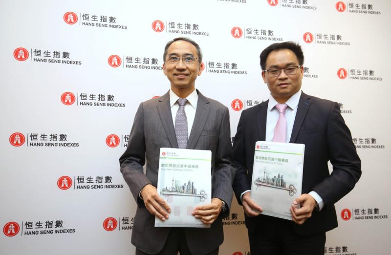 圖:恒生指數公司總經理關永盛(左)表示,未有討論會否將生物科技公司納入選股範疇。旁為研究及分析主管黃偉雄」大公報記者麥潤田攝