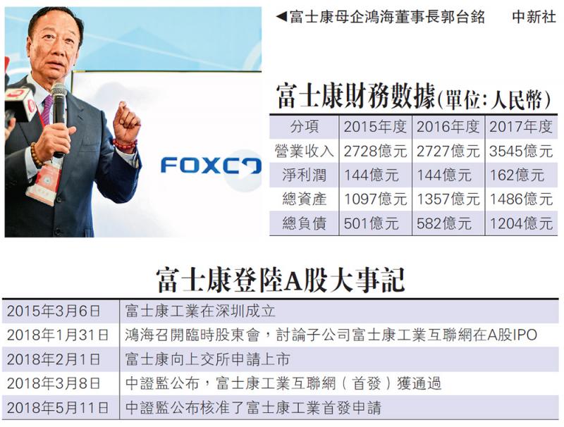 資料顯示,今年富士康IPO的過程,創造了A股IPO速度的新紀錄,從二月一日首次披露招股書起,到三月八日已獲得中證監發審委通過,僅僅用時36天,若扣除農曆新年長假期,富士康實際審批時間不足一個月,遠低於2017年中國公司IPO平均審核周期的一年三個月。