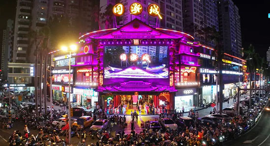 海南首個15米高黎紋燈塔矗立商圈,千盞非遺黎錦燈籠鋪就光影長廊,夜間更有千年非遺「打鐵花」、夜光舞龍巡演、火壺火舞秀輪番登場。遊客可參與潮趣遊園、非遺DIY(初四至初七),或在「美好心願車」寫下新年寄語,感受傳統與現代碰撞的奇幻年味。