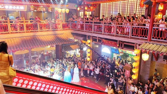 推出99元雙人暢玩券,涵蓋新春NPC巡遊、國潮專場演出(初一《錦鯉舞》、初五《財神到》)。商圈內設國風市集,漢服體驗、傳統手作攤位人氣十足,夜間燈光秀融合現代科技與古典美學,吸引年輕潮人打卡。