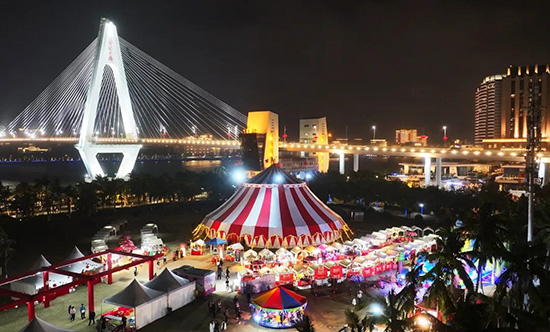 在逛燈展之餘,一旁的國潮市集中,各種地道的美食散發著誘人香氣,獨具特色的海島風物琳琅滿目,也讓市民遊客沉浸在新春佳節的氛圍中,盡情享受濃濃年味。