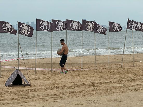 隨着發令槍響,勇士們如離弦之箭般衝出起點,瞬間點燃了海灘的激情。賽道上,高聳的攀爬網、考驗平衡的木樁橋等障礙,無一不考驗着參賽者的體力、耐力和智慧。然而,他們並未退縮,只有堅持與拼搏。在相互鼓勵與攜手中,他們共同跨越了一個又一個難關,展現了斯巴達勇士的颯爽英姿。
