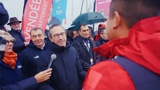 現任旺代議會主席Alain Le Boeuf也再次表達了對中國船長的歡迎,他說,Xu,儘管我已經對你說過,我還是想在這裏再說一次,非常榮幸能夠在旺代環球的現場迎來第一位優秀的中國船長,非常感謝你的努力讓我們看見夢想成真的樣子,希望你一路順風。