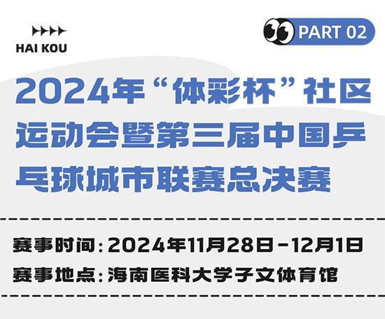 更多詳情請點擊下方鏈接:2024年「體彩杯」社區運動會暨第三屆中國乒乓球城市聯賽總決賽補充通知