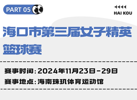 九支籃球隊伍集結完畢,來自各行各業的女子籃球愛好者,將在這裏為觀眾帶來一場難以忘懷的籃球盛宴。這不僅是一場籃球的較量,更是女籃精神的燃放!更多詳情請點擊下方鏈接:賽程和名單出爐!海口市第三屆女子精英籃球賽即將火熱來襲