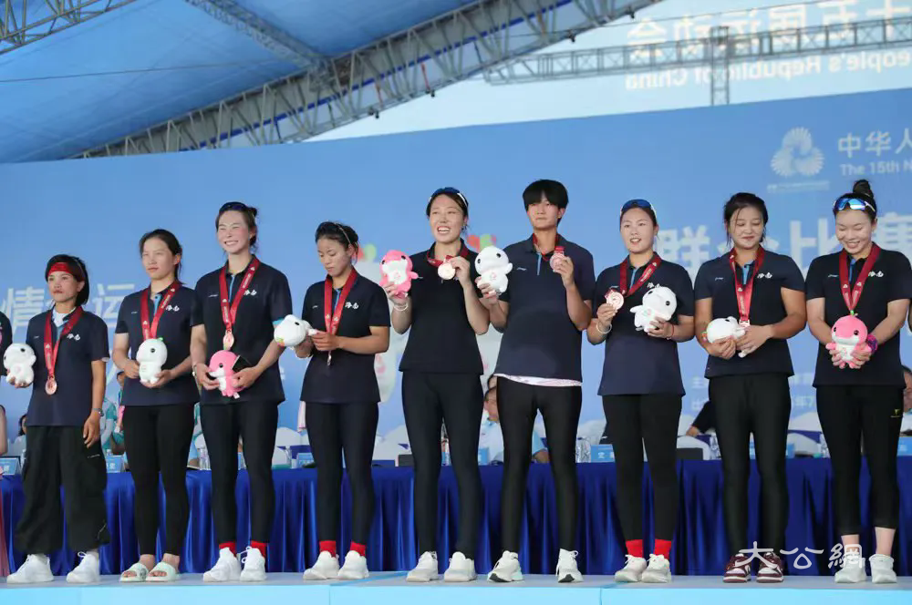 經過預賽、半決賽的爭奪,海南女子龍舟隊與廣東隊、四川隊和重慶隊進入最後的決賽。決賽中,海南女隊員們奮力劃槳劈開水面,在百米直道賽道中一路飛馳朝着終點衝去。最終,海南女隊以28秒10奪得女子100米項目銅牌,為海南奪得第十五屆全運會群眾比賽首枚獎牌。廣東隊、四川隊獲得冠軍和亞軍。