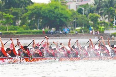 鼓點激越,浪花飛濺,又一繫列龍舟賽事點燃群眾熱情。8月2日下午,2025美蘭漁村龍舟賽在海口新埠島星海灣水岸風情街水域啟動,6支參賽龍舟隊伍展開首場周賽角逐。
