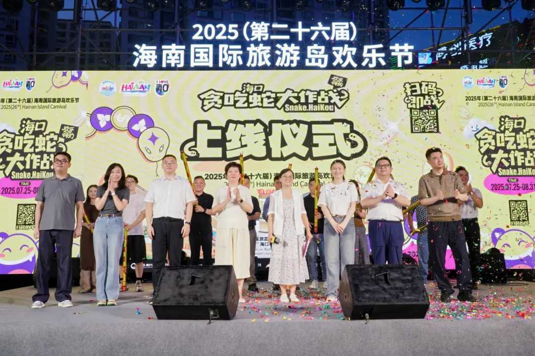 7月25日,2025年(第二十六屆)海南國際旅遊島歡樂節首波重磅活動——歡樂嗨購海口「貪吃蛇大作戰」H5上線儀式在上邦百匯城西廣場舉辦