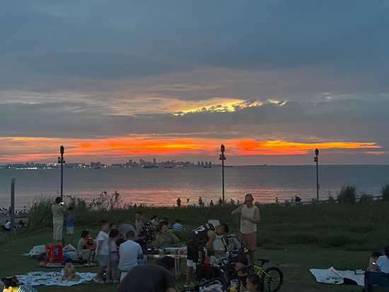 當晚,19時30分至21時30分,天空之山階梯上人來人往,歡聲笑語交織成最美的旋律。每一步攀登,都是向著更高處的風景與情感邁進。登上山頂,濱海大道的璀璨燈火與遠處城市的輪廓交相輝映,美不勝收,彷彿整個城市的溫情都凝聚在這一瞬,等待着與每一個家庭共享。