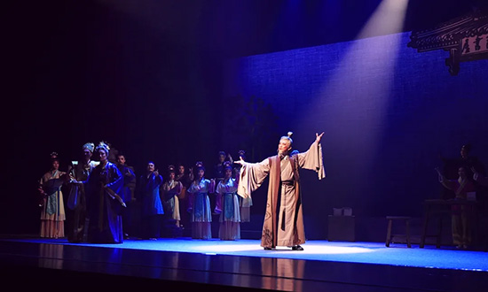 除此之外,瓊劇《布衣卿相》在舞美設計上獨具匠心,追求古樸素雅的風格,展現出濃郁的中國美學韻味。