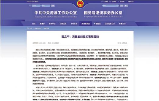港澳辦轉載《大公報》龔之平文章 候選人全力救災 展現愛國者治港新氣象