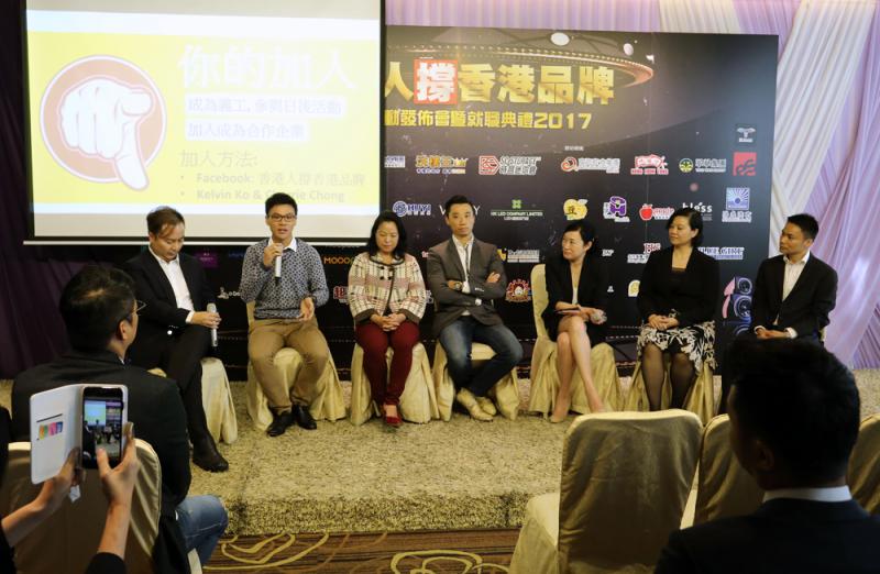 圖:「香港人撐香港品牌」論壇環節,主題為慈善公益事務。左三為陽光洗衣便利店有限公司集團總監江麗萍,左四為彩豐行創辦人楊振源