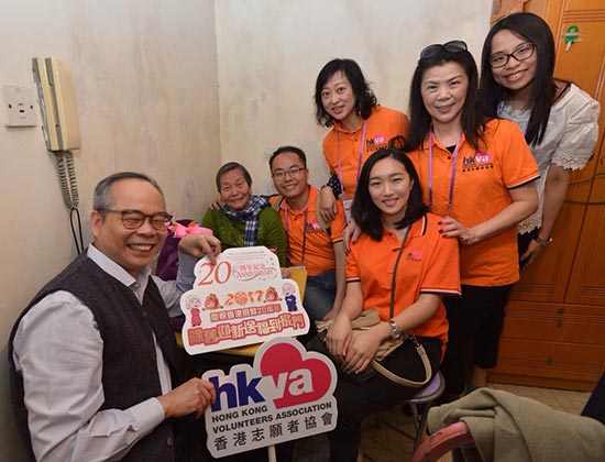 民政事務局局長劉江華與香港志願者協會主席陸海(圖右四)陪同一眾志願者探訪長者