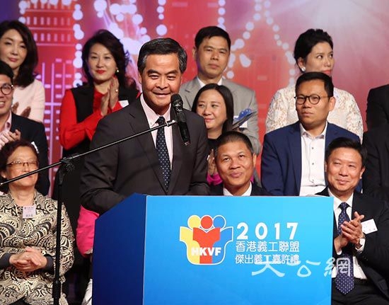 梁振英出席「2017傑出義工嘉許禮」 讚揚義工是香港社會的「有心人」。大公報記者黃洋港/攝