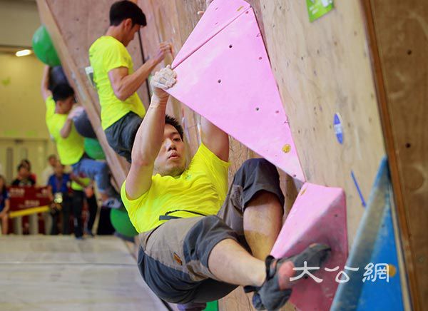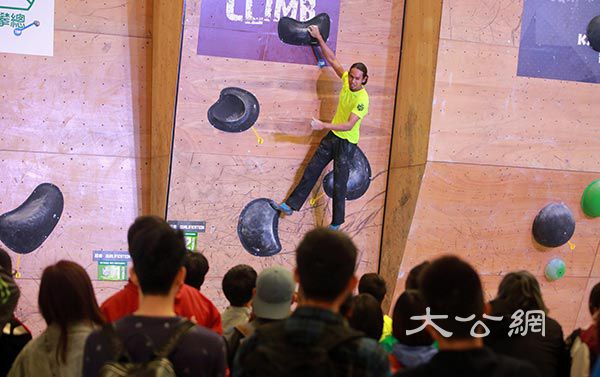 商場舉辦攀山比賽。大公報記者麥潤田/攝