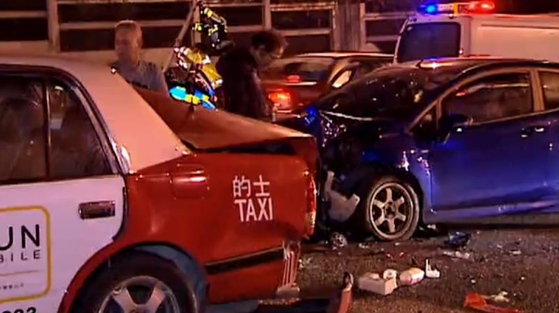 圖:的士及私家車碰撞/電視截圖