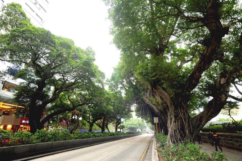 政府一直密切監察尖沙咀彌敦道兩旁的大樹生長情況,大部分已列入《古樹名木冊》,加強保護。(陳茂波網誌)