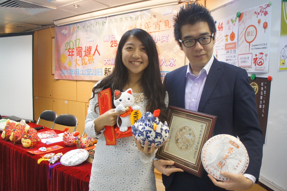 大公網1月8日訊(記者謝進亨)新春將至,九龍社團聯會今年再度舉辦年宵比賽,資助年青人進駐旺角花墟年宵市場擺檔,一嘗創業滋味。有參賽攤檔推出自家設計、融合中式陶瓷元素的的雞造型毛公仔,並售賣蜀錦、茶葉等傳統產品,藉此推廣中國文化。有攤檔則大搞新意思,售結合傳統及潮流元素的「玩味揮春」。九龍社團聯會青年事務委員會主席顏汶羽期望,比賽能助青年人學習營商、實踐「創業夢」。