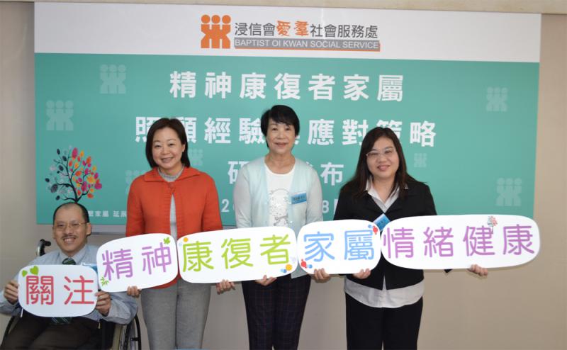 浸信會愛羣社會服務處在去年七月至九月,向294位需要照顧精神病康復者的18歲或以上家屬進行問卷調查。研究發現,當精神康復者出現精神病徵狀、病情反覆,甚至破壞行為時,照顧的家屬感到壓力與情緒困擾。71.2%的受訪家屬呈心理困擾狀況,當中呈嚴重心理困擾狀況的家屬佔25%,他們經常會「無故感到疲累」,其次是「感到緊張」和「感到無助」。