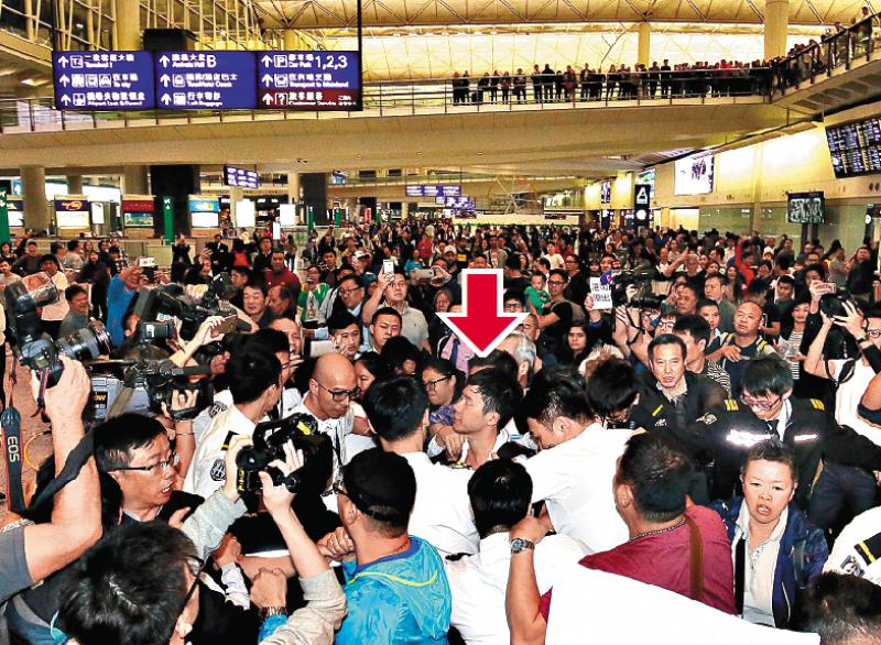 圖:羅冠聰昨晚返港,大批市民自發到機場示威,嚴正抗議他們違背立法會宣誓誓言/大公報記者黃洋港攝