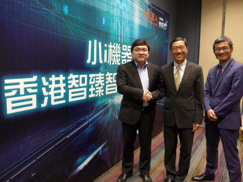 圖:(左起)「小i機器人」總裁兼首席技術官朱頻頻、香港科技園公司行政總裁黃克強以及「小i機器人」港澳台區域總監施浩鈞/大公報記者張月琪攝
