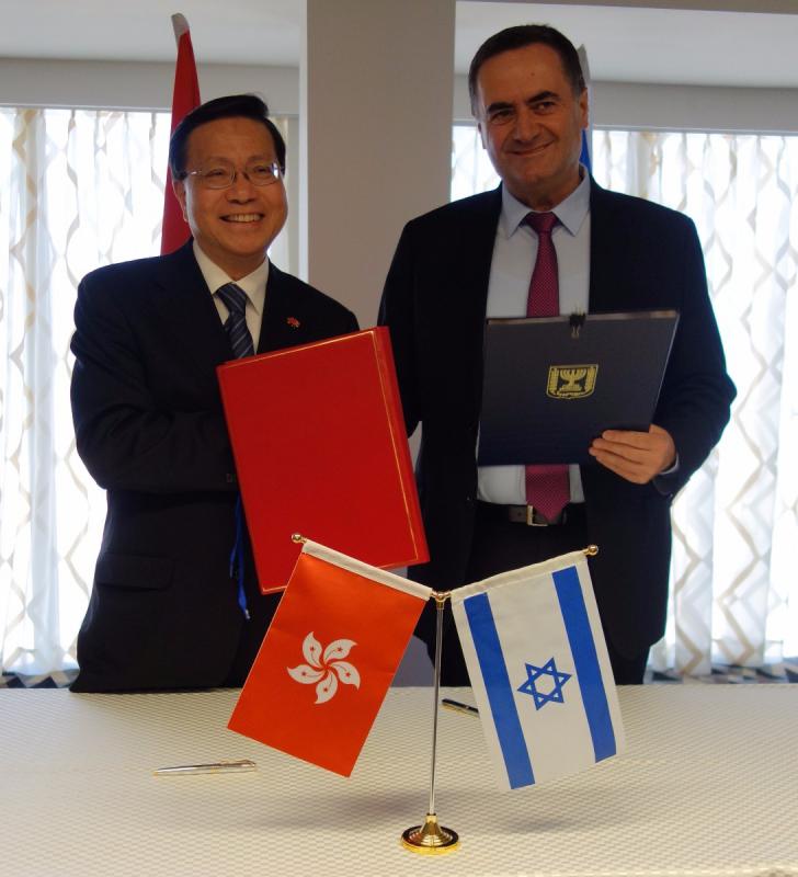 大公網訊 運輸及房屋局局長張炳良教授今日(特拉維夫時間六月八日)在以色列特拉維夫,代表香港特別行政區政府與以色列政府簽署民用航空運輸修訂協定。代表以色列政府簽署該民用航空運輸修訂協定的是以色列運輸及道路安全部長Israel Katz。