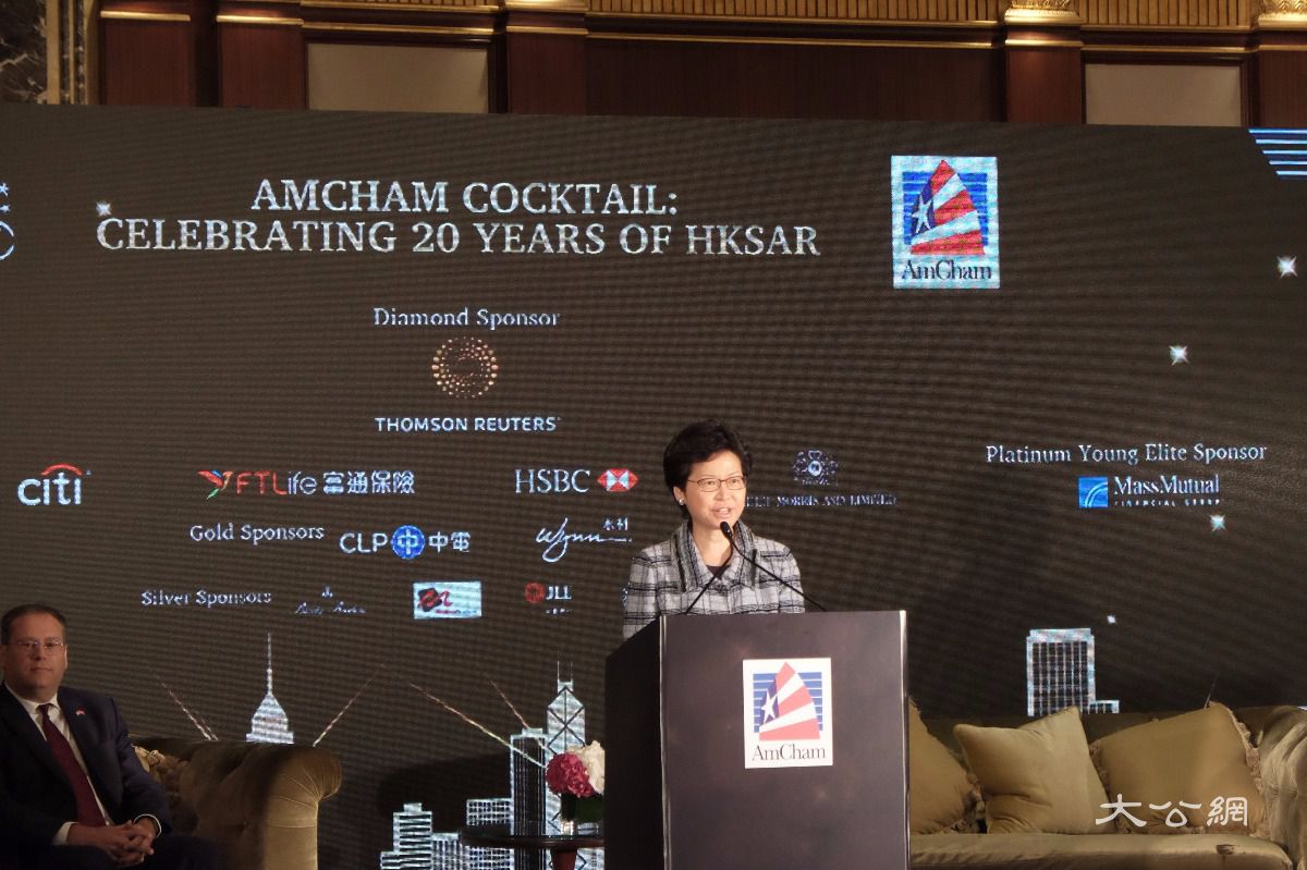 大公網6月8日訊(記者馮瀚林報道)香港美國商會今晚在金鐘港島香格里拉大酒店舉行慶回歸酒會,候任行政長官林鄭月娥致辭時表示,反應快速和處事果斷將會是下屆政府的特點,而她身為下屆特首,有責任捍衛香港的核心價值和傳統優勢,保障「一國兩制」繼續運行是她最重要的責任。另外,她又提到,特區政府將會與美國駐港澳總領事館繼續合作,努力吸引更多美國學府來港設立分校或舉辦課程。