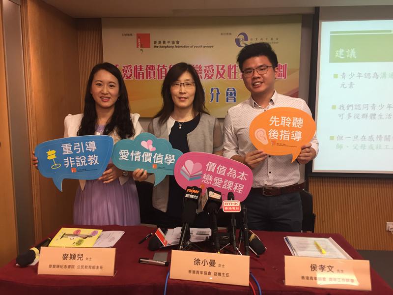 徐又建議青少年一旦在感情關係上遇上煩惱,除了父母,還可找可信任的老師或社工求助,解決困惑。
