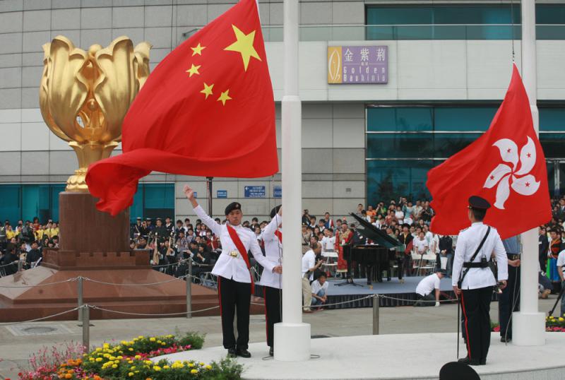 圖:白皮書肯定「一國兩制」在港的實踐取得了舉世公認的成功。圖為特區政府在金紫荊廣場舉行升旗禮