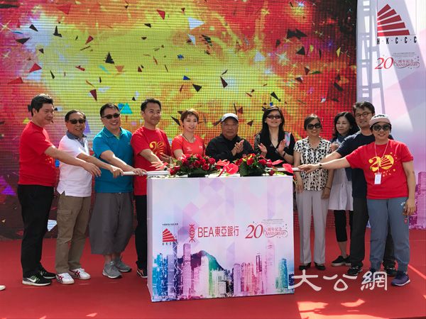 現場嘉賓共同見證「慶祝香港回歸20周年中港同樂日·東亞銀行體育嘉年華會」啟動。 大公網記者李柏濤 攝