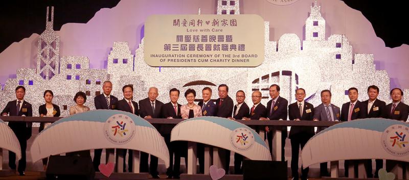 新家園協會「關愛同行新家園」慈善晚會暨第三屆會長會就職典禮昨日於灣仔會展舉行,逾千名來自政界、社福界、商界精英出席。新家園協會創會會長及董事會主席許榮茂表示,協會將於今年推行兩個主要項目,包括第三屆浙江青年交流團及「關愛家園卡」,冀繼續加強與特區政府、內地政府和社會各界的緊密合作,推動新來港及少數族裔等的社會融入。候任行政長官林鄭月娥表示,關愛互助是香港社會的優良傳統,本屆及新一屆政府將繼續致力於扶貧工作,改善社會民生。\大公報記者 李 淇