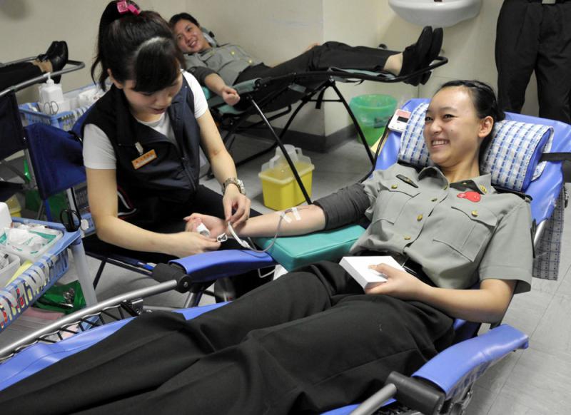 圖:解放軍駐港部隊連續第19次被嘉許單日最高人次捐血團體獎。圖為過往駐軍參加由香港紅十字會組織的無償獻血活動