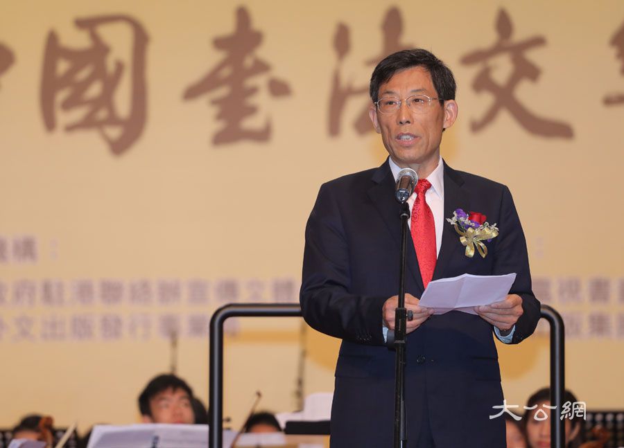 香港特區政府民政事務局局長劉江華、香港大公文匯傳媒集團董事長姜在忠、中國外文局副局長陸彩榮、中國書協香港分會主席施子清先後代表支持單位、主辦單位致辭。