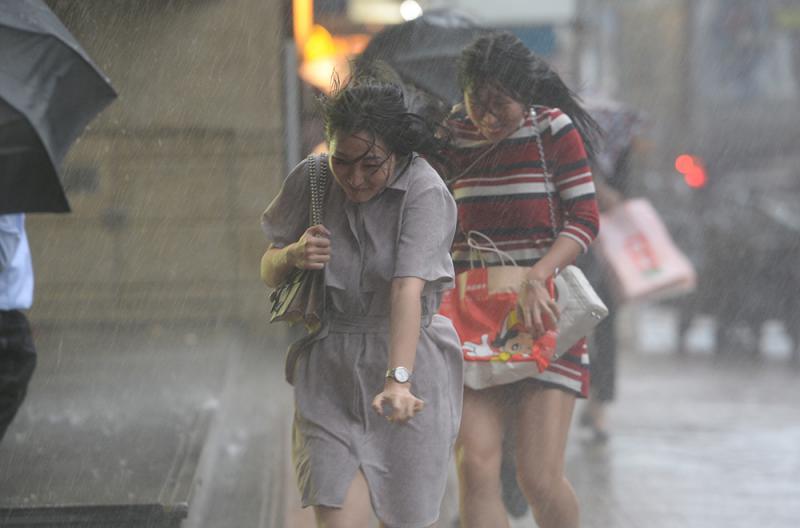 圖:八號風,市民在狂風暴雨下趕返家十分狼狽 /大公報記者林良堅攝