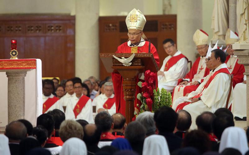 圖:天主教香港教區主教楊鳴章主禮履任祈福彌撒 /大公報記者麥潤田攝