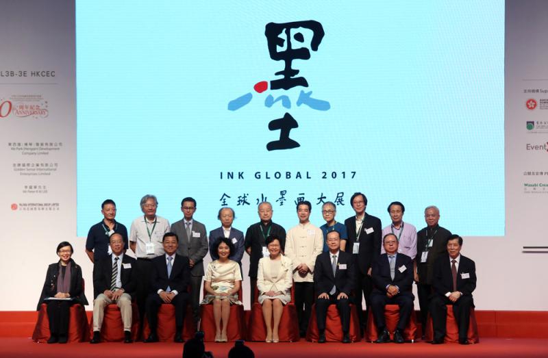 「全球水墨畫大展」由八月四日起,一連五日在香港會議展覽中心免費公開展出,是香港特別行政區成立20周年的大型慶祝活動之一。林鄭月娥和方黃吉雯之外,昨日出席祝捷會的主禮嘉賓,還包括外交部駐港特派員謝鋒、中聯辦副主任楊健、體育、演藝文化及出版界立法會議員馬逢國、旅遊發展局主席林建岳、前民政事務局副局長許曉暉,以及「全球水墨畫大展」策展人郭浩滿。