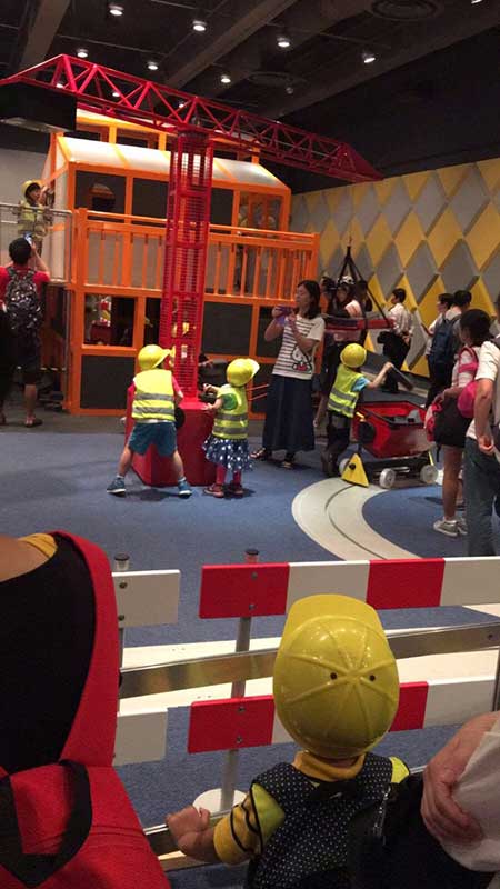 「小小工程師」的角色扮演遊戲,讓兒童穿上小背心及戴上安全帽扮演工程師