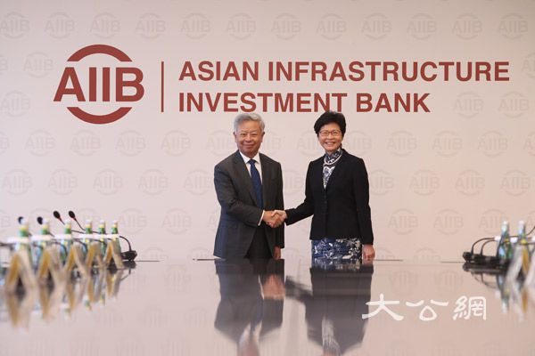 林鄭表示,希望香港未來能夠得益於亞投行的項目,同時為亞投行作出貢獻。金立群則回應,期待香港在亞投行扮演重要角色。(大公文匯全媒體新聞中心供稿)