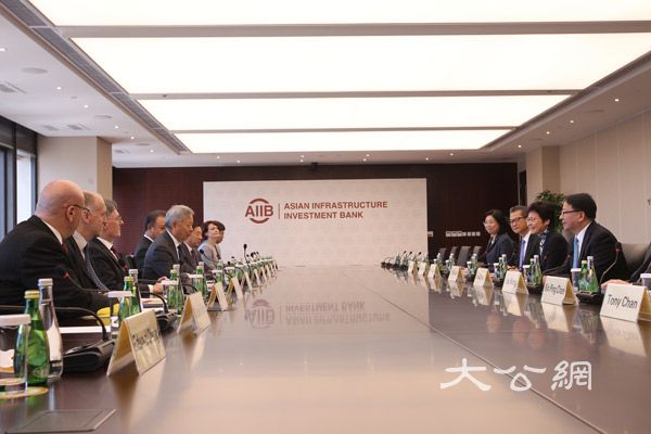 大公文匯全媒體記者馬靜北京報道 正在北京訪問的行政長官林鄭月娥上午到訪亞洲基礎設施投資銀行,與亞投行行長金立群會面。