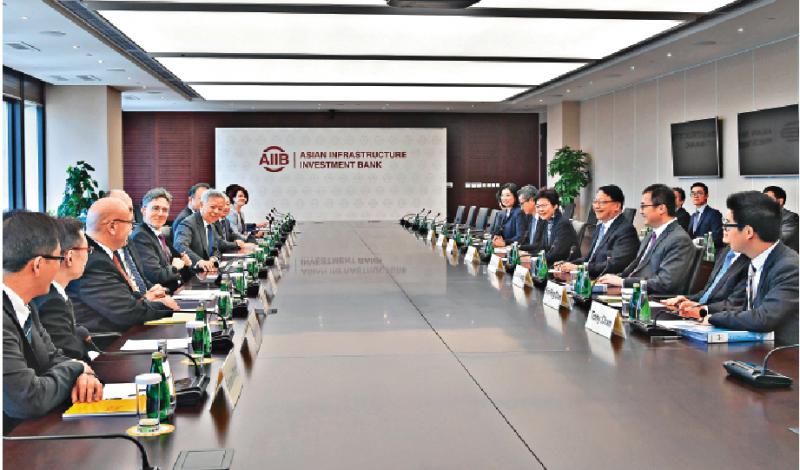 【大公報訊】記者馬靜、實習記者張子雯北京報道:行政長官林鄭月娥昨日在京與亞投行行長金立群會面。林鄭月娥表示,香港作為國際金融中心,很願意為亞投行倡議做出貢獻。她表明,創建亞投行是一項極其重要的國際倡議,希望香港和亞投行均在今後的重大項目中獲益,香港也期待更加積極地參與亞投行事務。金立群祝賀香港成為亞投行首批非創始成員之一,期待香港在亞投行的發展中扮演更重要角色。