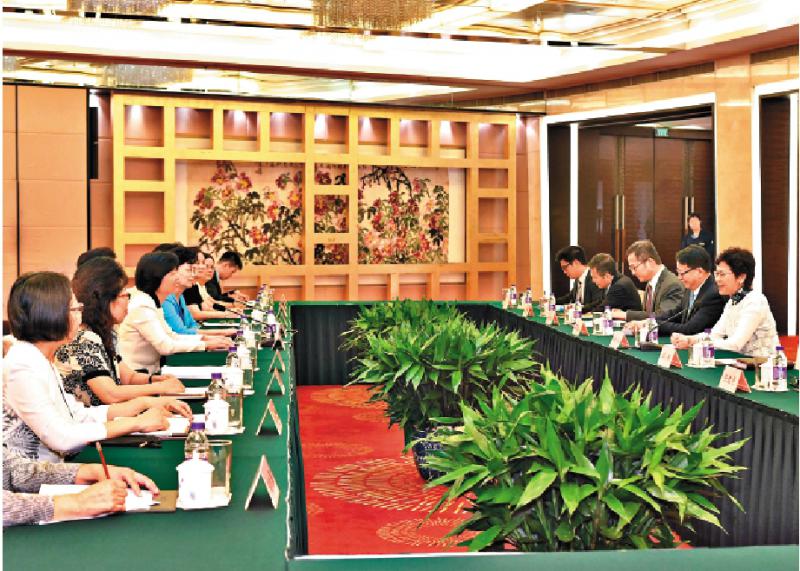 圖:林鄭月娥昨日下午在北京,與中華全國婦女聯合會主席沈躍躍會面