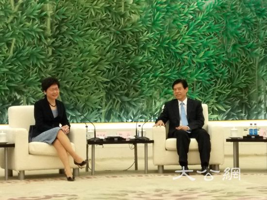 林鄭月娥(左)晤商務部長鍾山