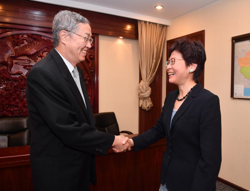 此外,八日上午林鄭月娥還前往中國人民銀行,與中國人民銀行行長周小川會面,雙方就香港發展離岸人民幣業務、參與國家「一帶一路」建設以及加強內地與香港金融合作等共同關心的問題交換了意見。
