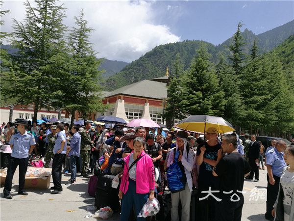 遊客在九寨溝溝口等待轉移疏散(中新社)