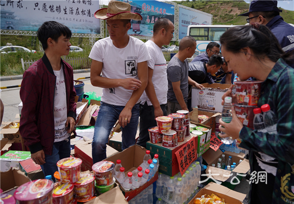 出租車司機等人員在機場門口為滯留旅客和救援人員免費提供飲用水和食品,並提供免費接送服務(新華社)