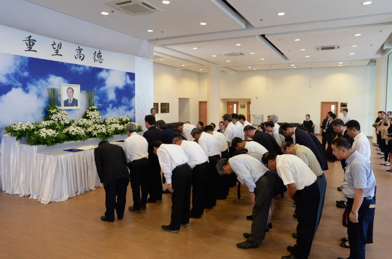 前新界鄉議局主席、人稱「發叔」的劉皇發上月底逝世,鄉議局昨起一連七日,在位於沙田的鄉議局大樓地下展覽廳設公眾弔唁處悼念。全國政協副主席梁振英、行政長官林鄭月娥和中聯辦副主任何靖等政界人士昨日先後到場致哀。林鄭月娥讚揚劉皇發致力改善鄉民生活,促進鄉郊發展,是「愛國、愛港、愛鄉」典範。劉皇發的喪禮定於下周三於香港殯儀館舉行。/大公報記者 許嘉信(文) 林良堅(圖)