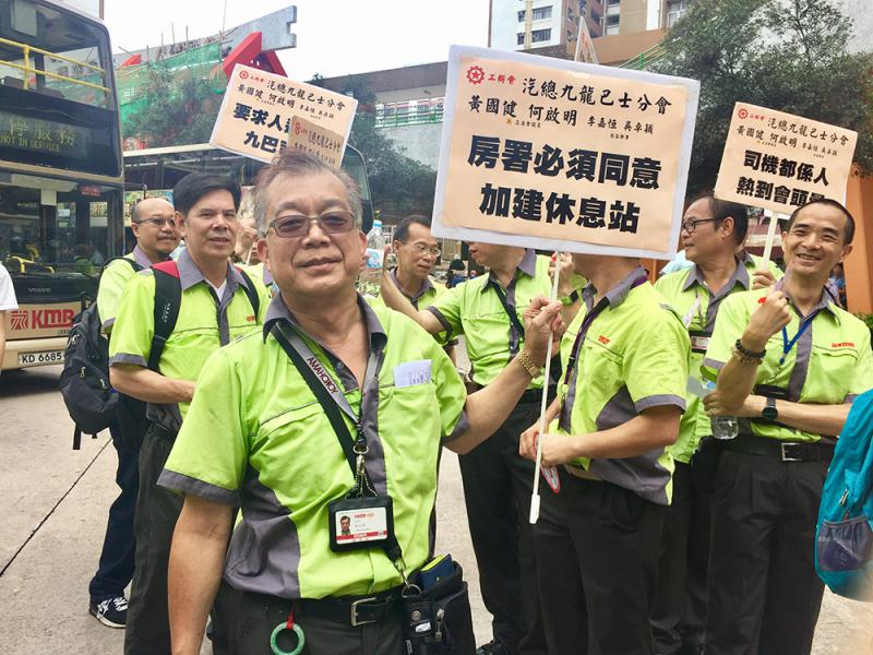 九巴在本周二於樂華總站設立一間約200平方呎的車長休息室,兩日後即被房屋署圍封。房屋署指休息室位處公眾地方,要求九巴48小時內移走,否則將隨時撿走及處理該物品。昨天中午,樂華總站約30個九巴司機在32℃高溫下舉牌靜坐半個鐘,表明「司機也是人,熱到會頭暈」、要求房屋署准許設置休息室,人性化對待司機。