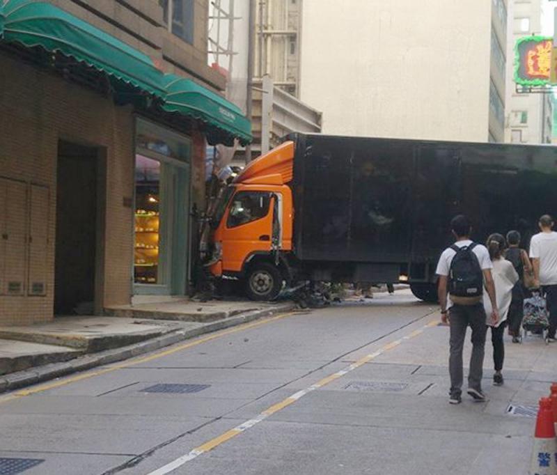 意外於昨日傍晚六時許發生。現場消息稱,當時有警員在鴨巴甸街執行打擊非法泊車,一名男子遂登上一輛貨車,欲開車離去,有目擊者表示有人曾表示貨車機件有問題,無法開動。稍後,該貨車又能開動,並沿路落斜往威靈頓街,其後突然失控,如脫繮野馬,擦撞附近蓮香樓的外牆,途人紛紛走避,電光火石間貨車直撞威靈頓街首飾店的外牆,貨車始停在行人路與店舖外牆之間。
