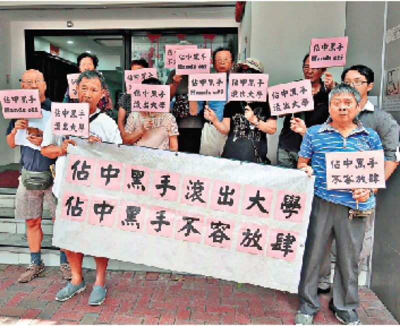 示威人士表示,律政司在今年三月落案起訴「佔中」發起人戴耀廷、陳健民、朱耀明以及多名搞手,分別控以普通法下的「串謀公眾妨擾」,「煽惑公眾妨擾」及「煽惑他人煽惑公眾妨擾」等罪名。然而,戴耀廷仍然興風作浪,鼓動年輕人與他「陪葬」,尤其是他身處所謂的「學術塔」內,扮演導師角色,荼毒學子。